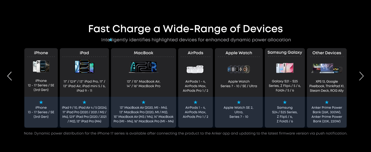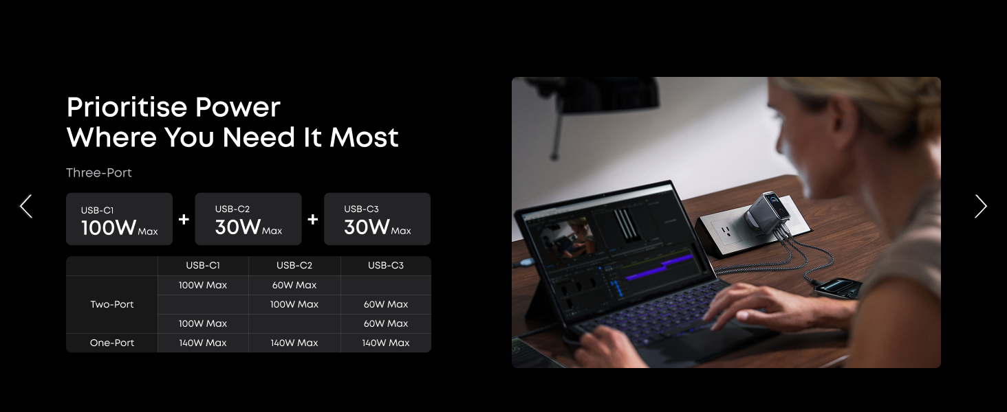 - One Equals Three: With smart power distribution powered by PowerIQ 5.0, power a 16" MacBook Pro, iPhone 16 Pro Max, and 11" iPad Pro in the same time as three original chargers (140W + 35W + 35W). Carry one instead of three and stay fully productive on the go.