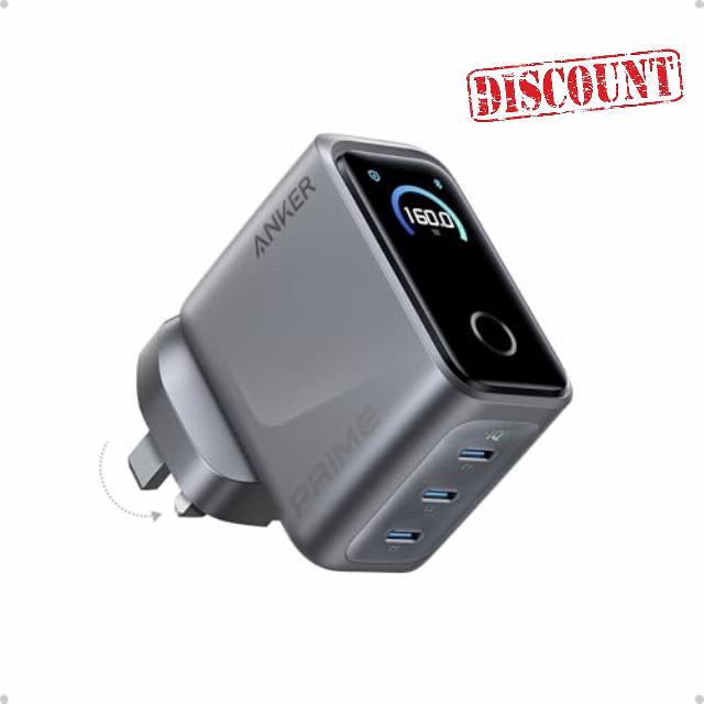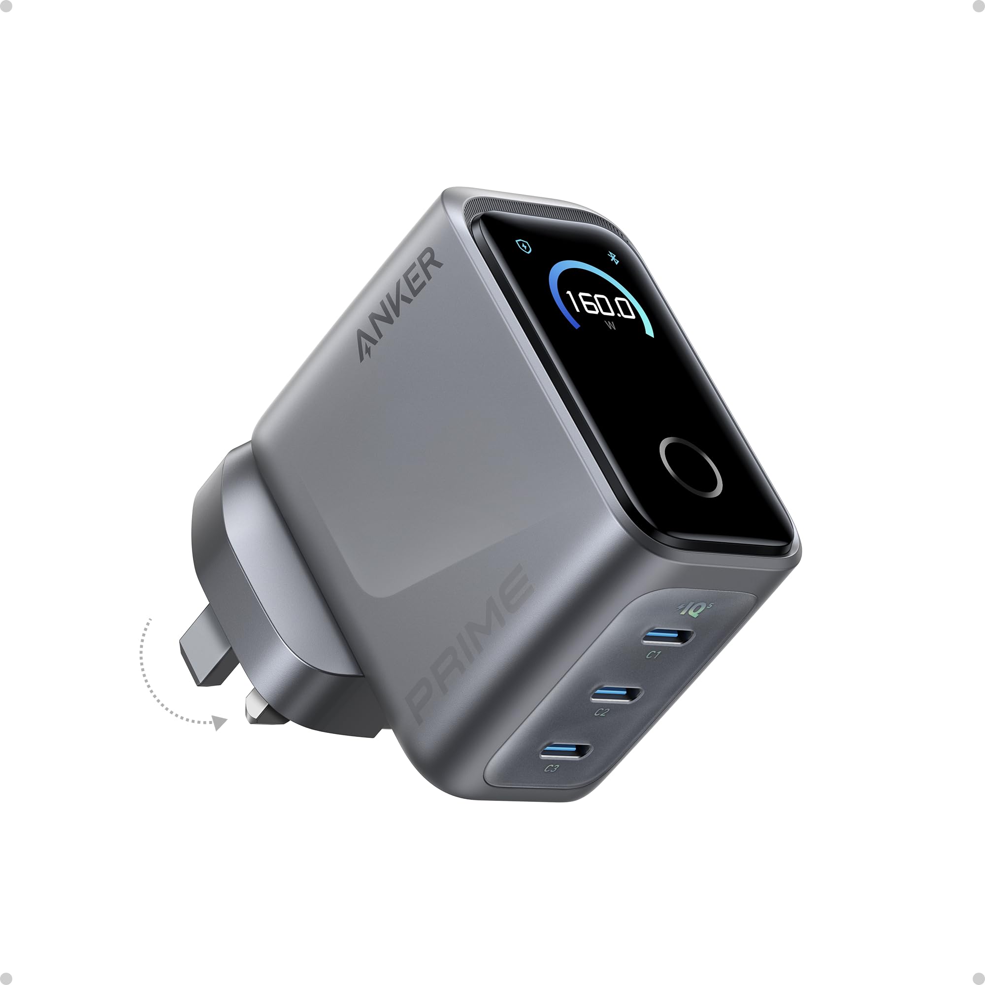 Anker Prime USB C Charger, 160W 3-Port Compact USB C GaN Charger, Smart Display and Touch Control, Ultra-Fast 140W Any-Single-Port Charging for Laptop, MacBook, iPad, iPhone 17/16/15 Series, and More