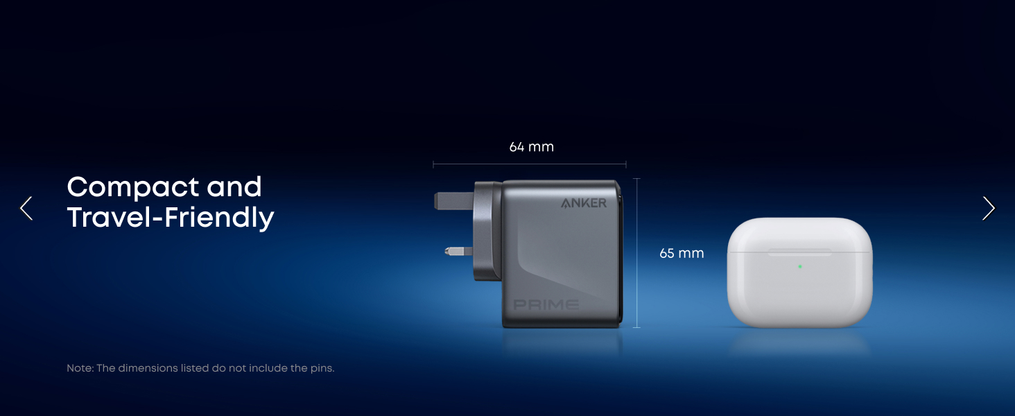 - AirPods-Size 160W Power: Delivering 1.35W/cm³ of power density, this sleek 3-port USB-C charger provides a total output of 160W while being as compact as an AirPods Pro 3 case, making it easy to carry yet powerful enough to handle your devices.