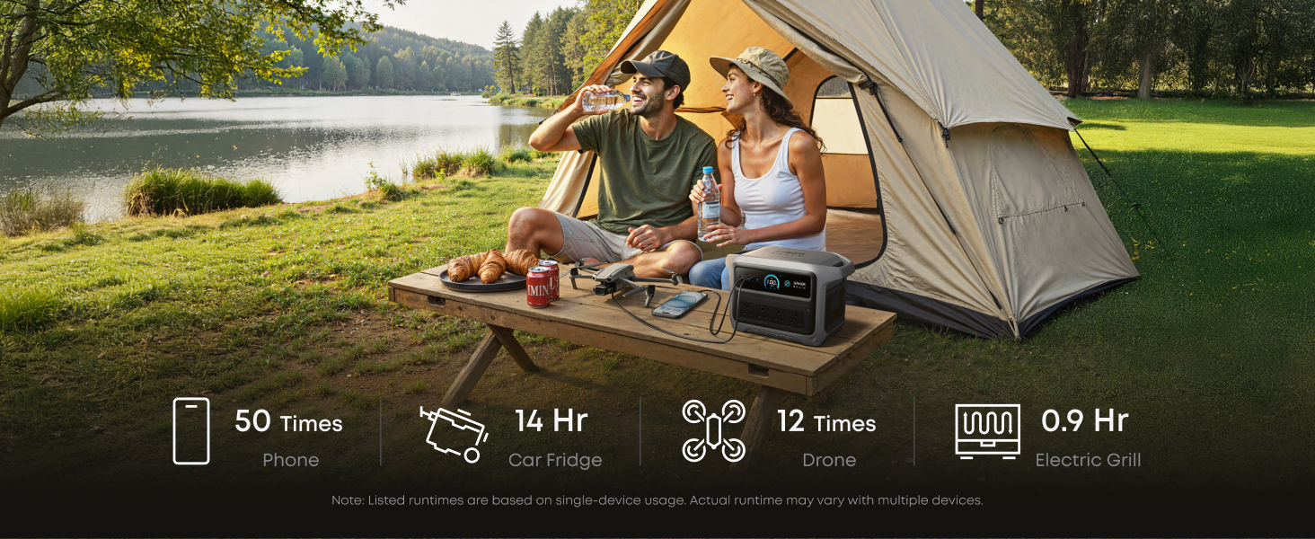 - 2,000W Output via 9 Ports: With 2,000W output, 3,000W peak, and 1,024Wh capacity—you can power up to 9 devices anytime.