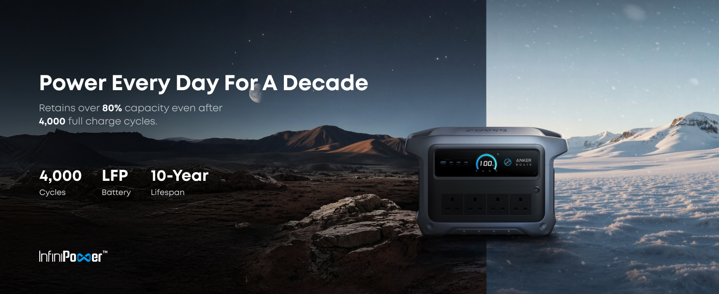 - 10 Years of InfiniPower: Built to last a decade of daily use. After 4,000 cycles, the battery still has at least 80% capacity.