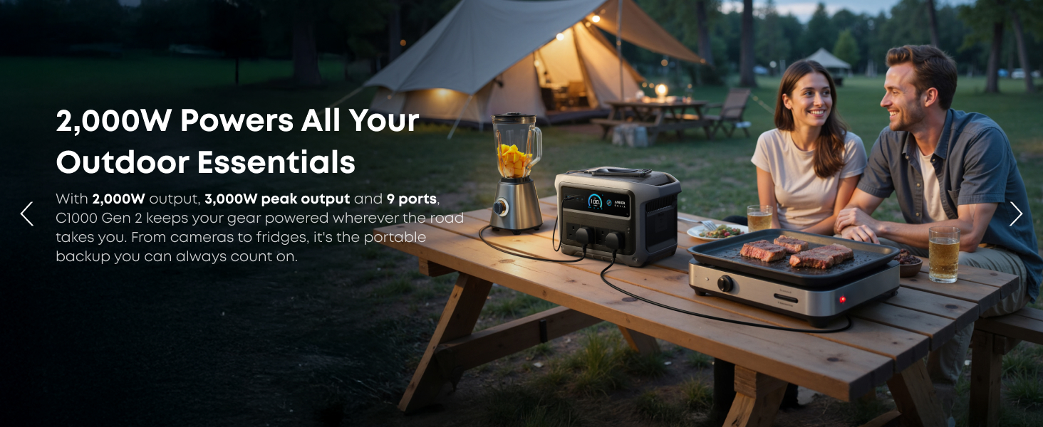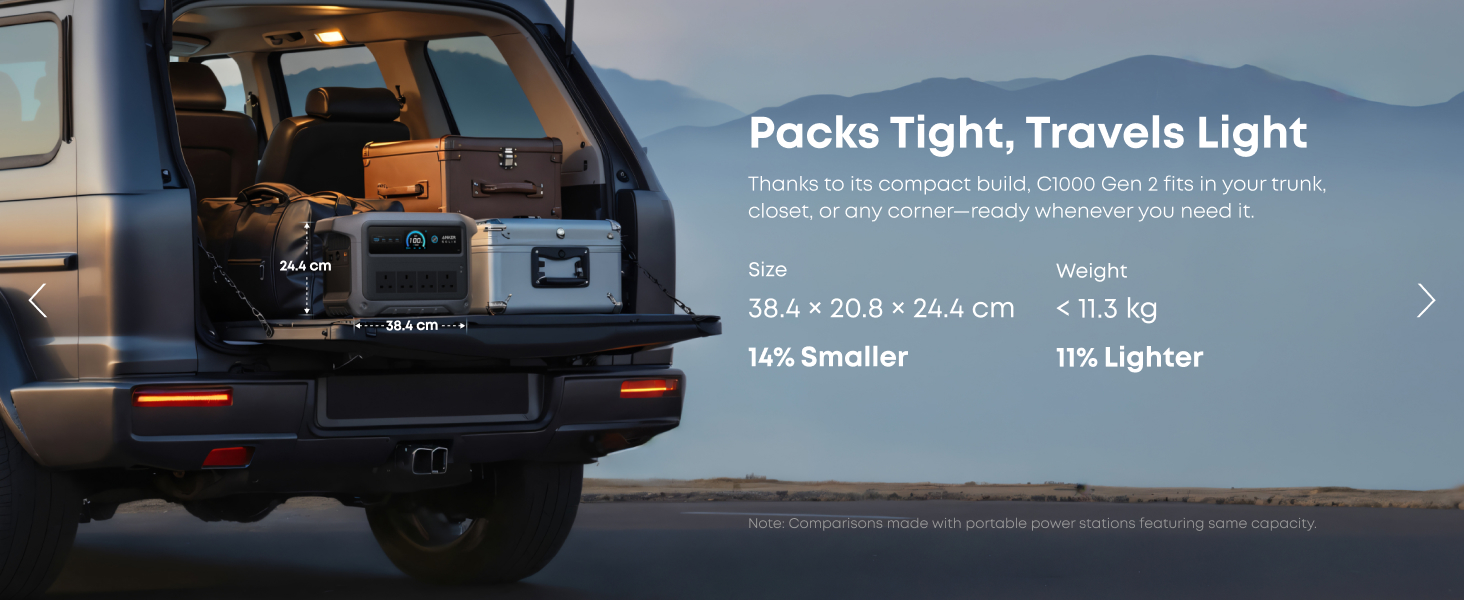 C1000 Gen 2 delivers faster charging and higher output power. To improve portability by reducing weight and size, it does not include an expansion feature. For users who need expandable capacity, C1000 is recommended.