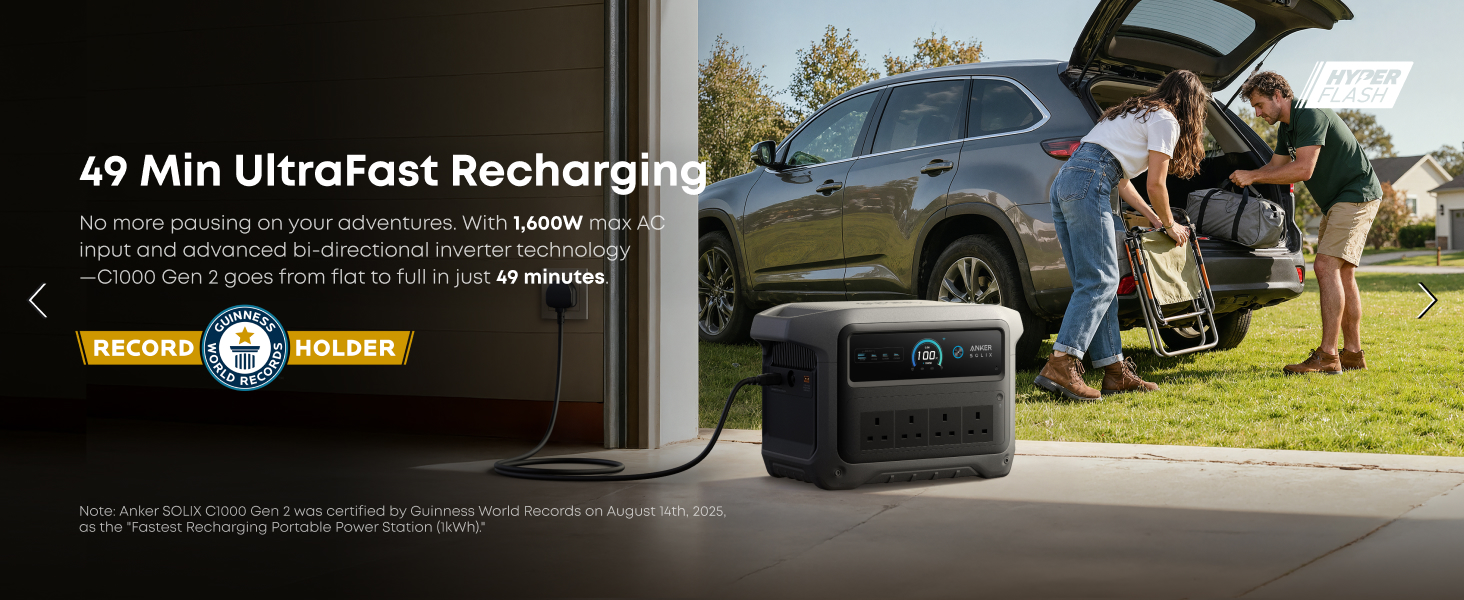 - 49 Min UltraFast Recharging: Featuring our upgraded HyperFlash technology, it fully recharges at 1,600W. Enable it in the Anker app.