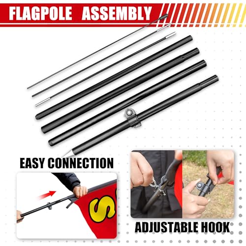 - Easy Setup & Portable Kit – Made in China. Includes 1 used cars swooper flag, 6 sectional poles, 1 ground stake, and 1 storage bag for convenient transport, quick setup, and takedown with minimal effort