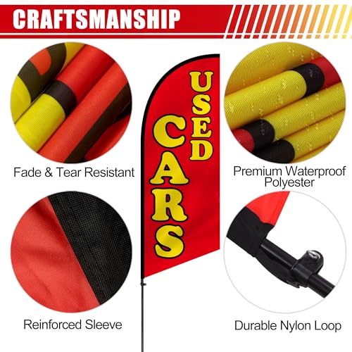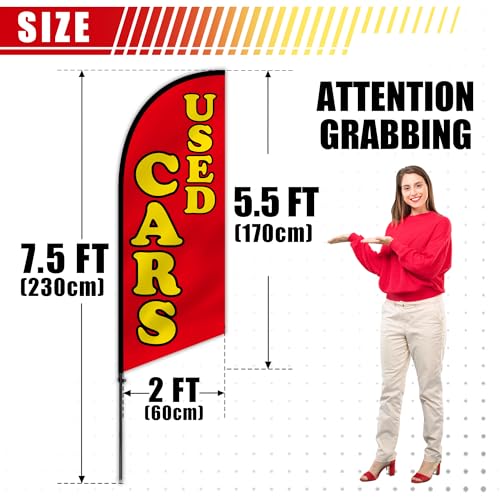 Anley 7.5 FT Used Cars Feather Flag Banner Kit – Outdoor Swooper Advertising Flags with Pole and Stake – Used Car Sales Sign for Dealerships, Auto Lots, Car Promotions – Weather Resistant & Easy Setup