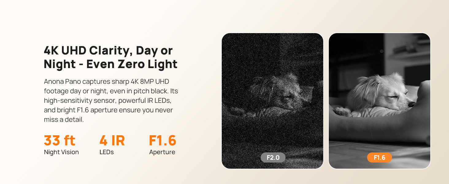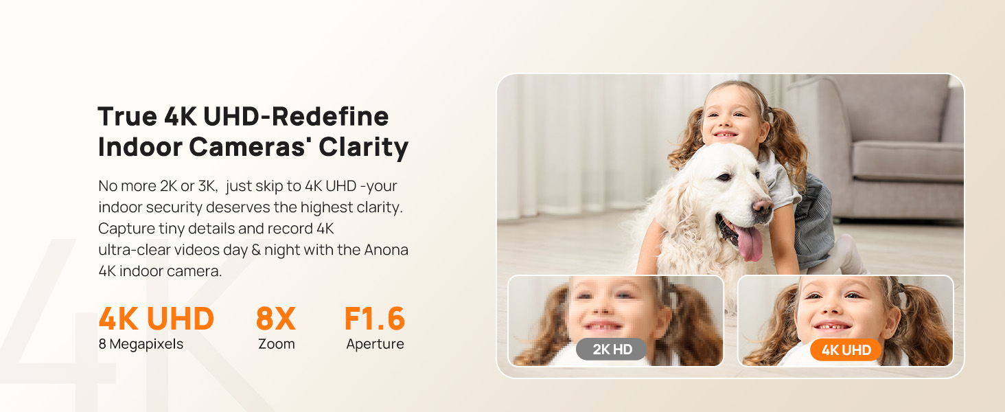 【Stunning 4K UHD & 8x Zoom】 Capture tiny details and record 4K ultra-clear videos day & night with the Anona 4K indoor camera, say goodbye to 2K or 3K. The professional-grade lens and 8X zoom bring distant details into sharp focus, so you never miss some wonderful moments.