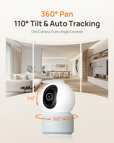 【Ultra-Smooth 360° Pan & 110°x Tilt】Just pan the camera in 360° or tilt it in 110° to see all around.One indoor security camera covers every angle. The auto-tracking feature will detect a moving object, follow it, and record it.