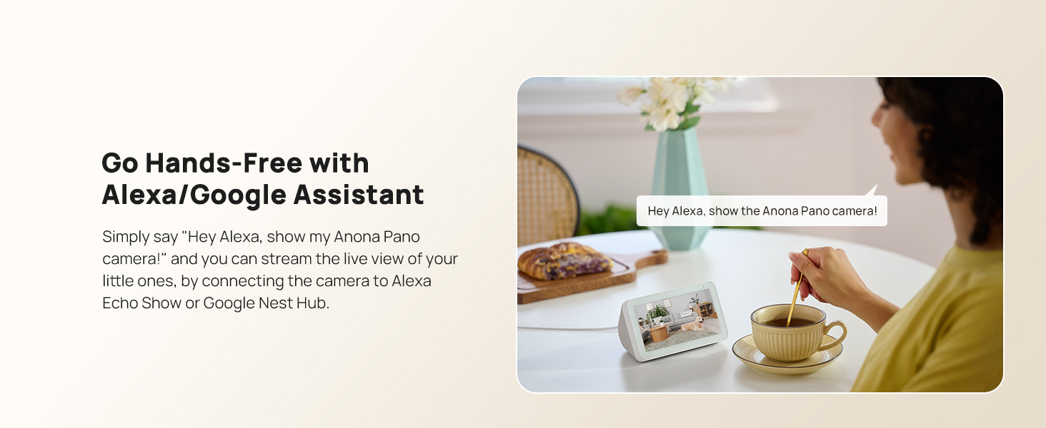 Anona Pano supports integration with Google Assistant and Amazon Alexa. In Settings, select the corresponding platform and follow the camera setup instructions to bind it to the platform.
