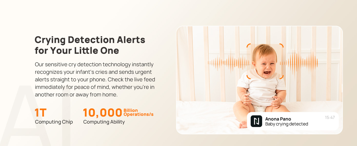 【AI Person/Pet/Crying Detection 】Thanks to the AI algorithms, Anona pet/baby camera is able to detect pets, person, and baby crying. And you will receive a notification from the phone app immediately. Keep track of your loved ones even when you are busy.