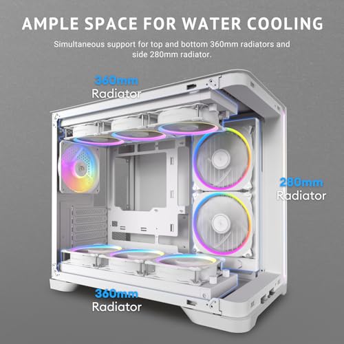 - Full-View PC Case with Curved Front & Side Tempered Glass Panel.