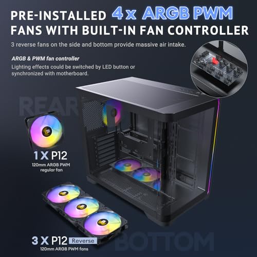 - Pre-Installed 4 x ARGB PWM Fans Including 3 Reverse Fans.