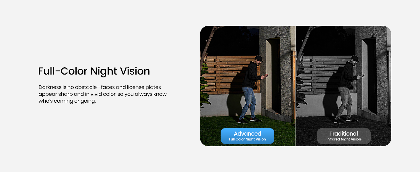 - 【Crystal-Clear 4K UHD + Starlight Night Vision】Experience crystal-clear 4K resolution (3840×2160) and 8MP clarity, capturing every detail in lifelike quality. Whether it's day or night, you’ll have a sharp image to easily keep an eye on your property, making sure nothing important is missed—even in low light or from far away.