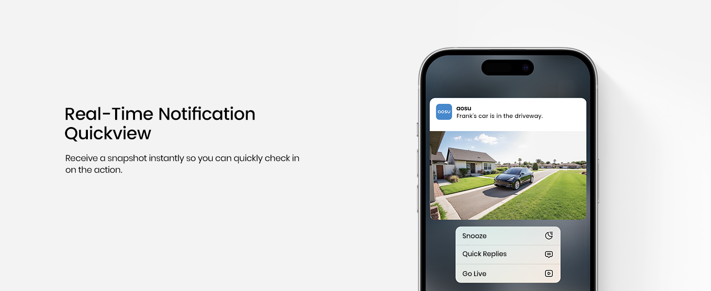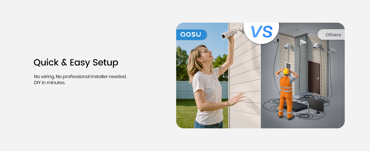 - 【Two-Way Audio & Customizable Privacy Settings】The AOSU Wi-Fi security camera features built-in two-way communication, allowing you to speak clearly and directly with anyone in front of the camera at any time. For enhanced privacy protection, voice modulation can be enabled as needed. Additionally, sensitive zones and custom privacy areas can be precisely defined to safeguard personal space. The camera is compatible with Alexa for seamless integration into your smart home.
