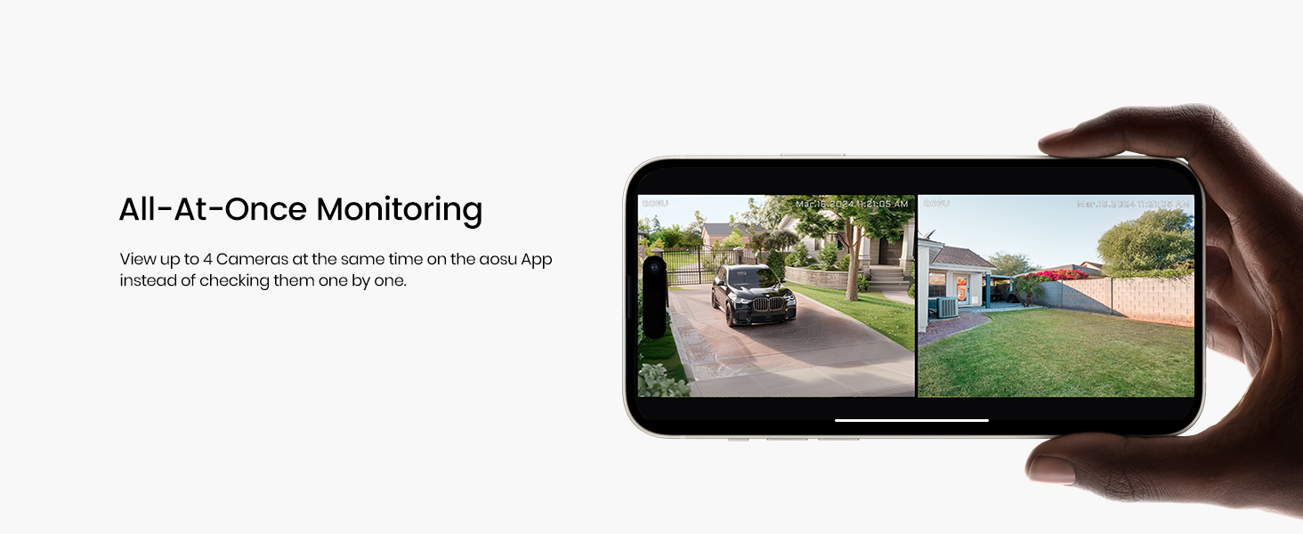 - 【Multi-Screen Live View – Monitor Up to 4 Cameras Simultaneously】Stay fully informed with real-time monitoring of up to four camera feeds at once through the app. This feature provides comprehensive, at-a-glance coverage of your entire property. With centralized access and a streamlined interface, you can respond quickly to any activity, enhancing both security and peace of mind.
