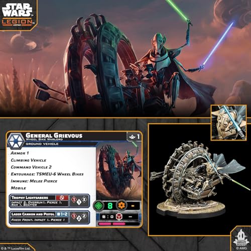 Asmodee | Star Wars: Legion – General Grievous' and TSMEU-6 Wheel Bike | Miniature Board Game | Ages 14+ | 2 Players | 90+ Minutes Playing Time