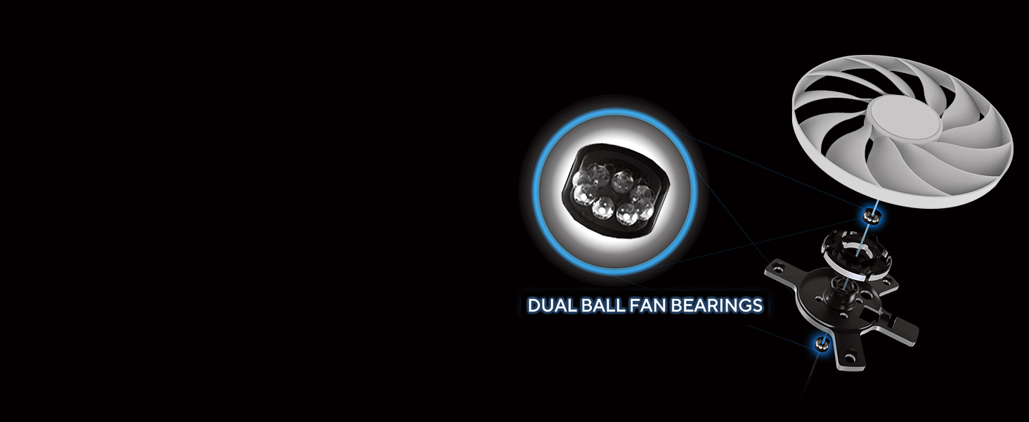 A carefully designed shroud, heatsink, and heatpipe layout enables the two Axial-tech fans to leverage chassis side-panel ventilation, delivering thermal performance that beyond the compact size.
