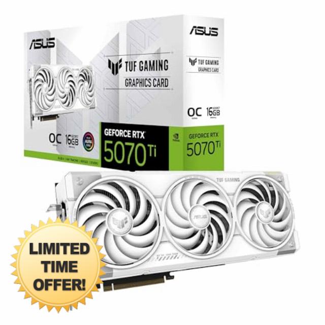 ASUS TUF Gaming GeForce RTX ™ 5070 Ti 16GB GDDR7 White OC Edition Gaming Graphics Card (PCIe® 5.0, HDMI®/DP 2.1, 3.125-slot, Military-Grade Components, Protective PCB Coating, axial-tech Fans)