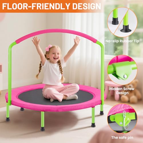 ATIVAFIT 36''Mini Foldable Rebounder Trampoline for Toddlers Kids With Super Safety Pad Foam Handle and Oxford Padded Noise-Free Kids Cover Fun for Kids Indoor/Outdoor for 2-6 years old