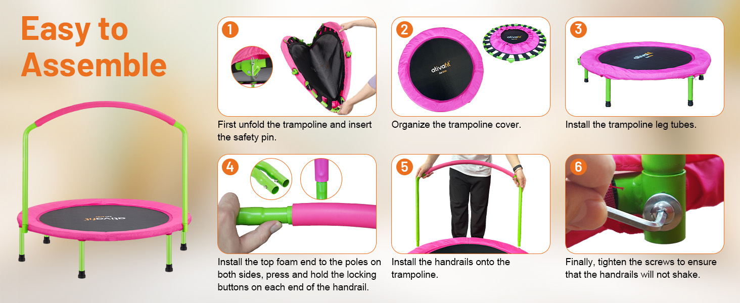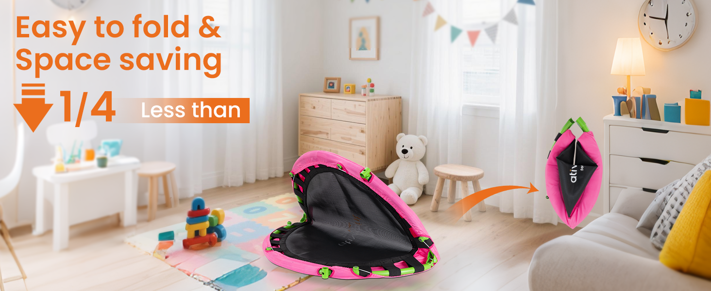 Foldable and Portable: The trampoline foldable design makes it convenient to store and transport, perfect for families on the go or limited space.Simple and hassle-free assembly means less time setting up and more time for play, making it a convenient choice for busy parents.