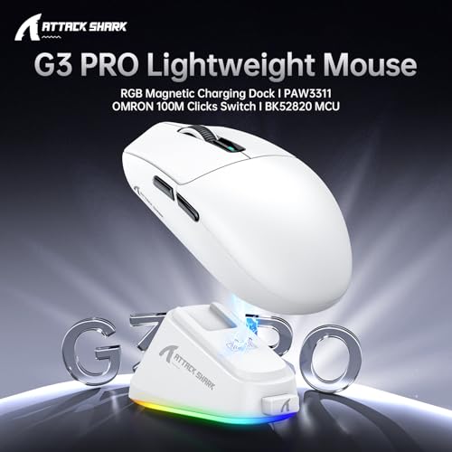 ATTACK SHARK G3PRO Gaming Mouse with Magnetic Charging Dock, PixArt PAW3311 Gaming Sensor, BT/2.4G Wireless/Wired Gaming Mouse, 25000 DPI, Gamer Mice for Win11/Xbox/PS/Mac (White)