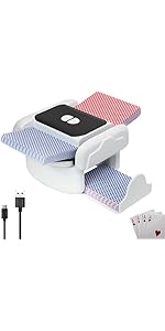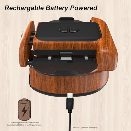 - [Rechargable card shuffler for cards] A built-in rechargable battery is included, together with a USB-C charging cable. The card shuffler supports up to 25000 shuffles per charge.