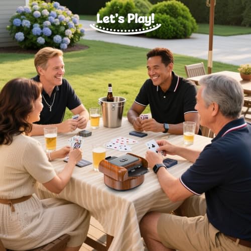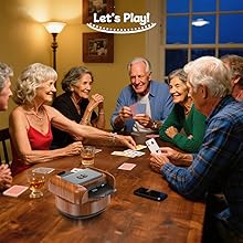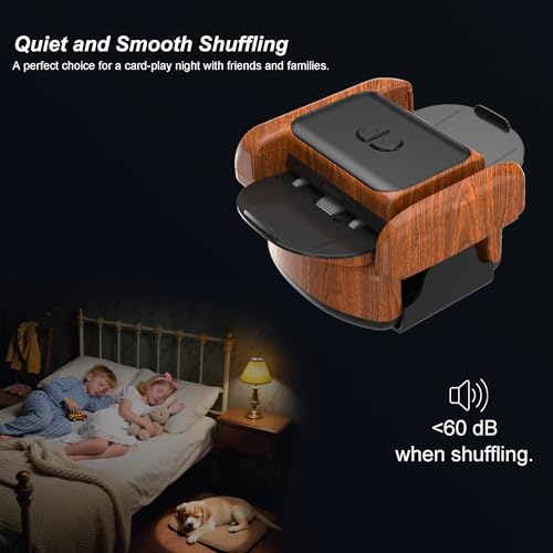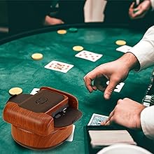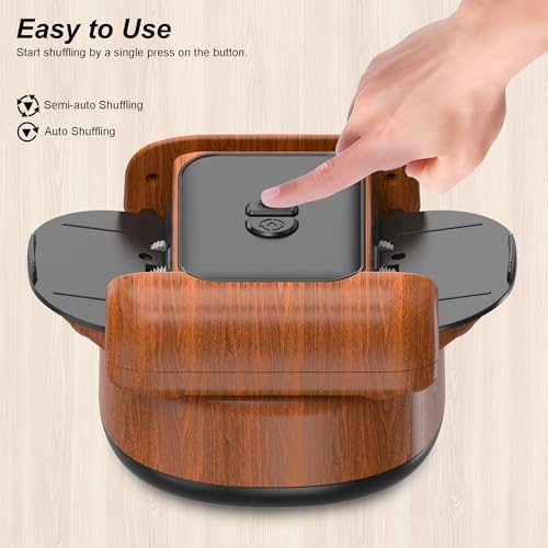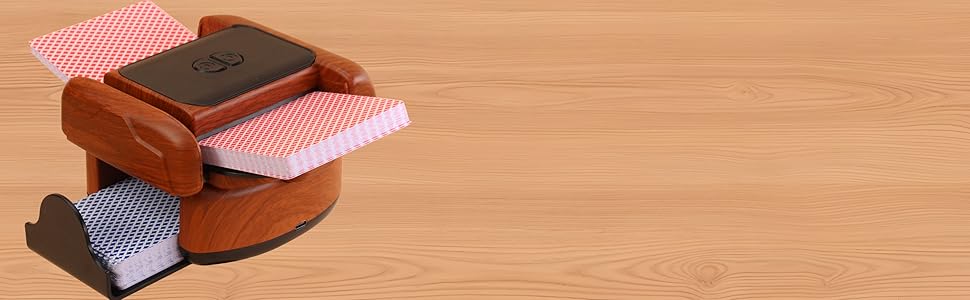 - [Idea Gifts for him&her] Made of ABS with luxury wood grain finish, the card shuffle machine is a nice gift for poker card lovers for party, travel, outdoor playing, casino poker and other card games.