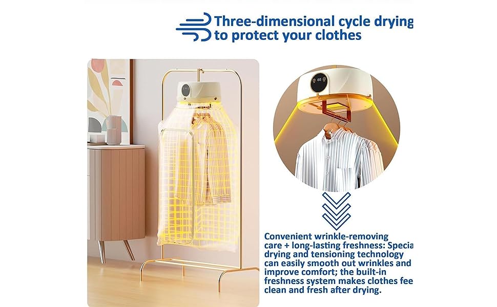 5. TensionForm Wrlock Technology — Integrated garment-stretching forms and adaptive tension systems in this Portable Clothes Dryer Upgraded target collar creases, sleeve folds, and fabric puckering. Simplify ironing routines and extend clothing lifespan with professional-grade care at home