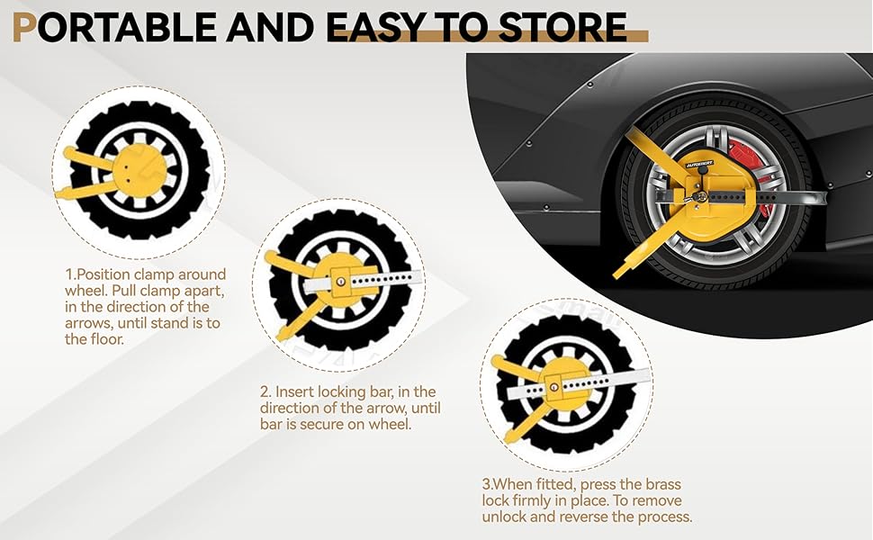Enhanced Visibility: The tire safety lock is designed with a strikingly bright color, which significantly increases its visibility from a distance. This feature not only makes it easy to spot in various lighting conditions but also ensures that setting it up is straightforward and hassle-free