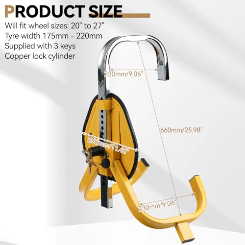 Adjustable Fit: The suction cup anti-theft wheel locks are suitable for tyres from 13 to 15 inches and for cars, vans, trailers and caravans with tyre widths from 175 mm to 215 mm and diameters from 450 mm to 650 mm