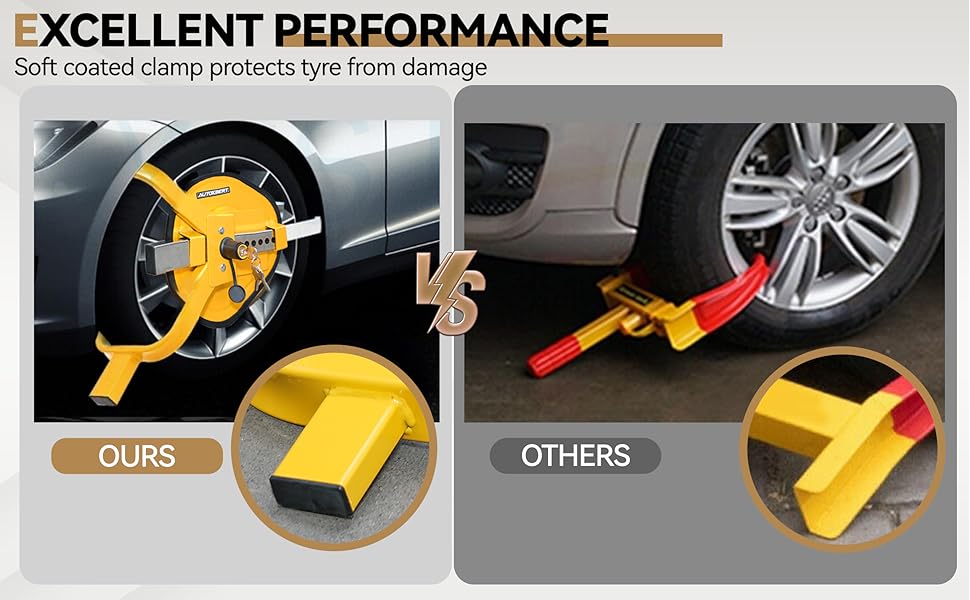 Scratch-Free Protection: The soft-coated AUTOXBERT suction cup type wheel lock clamp prevents scratches or damage to wheels or rims, accommodating tires from 13 to 15 inches in size