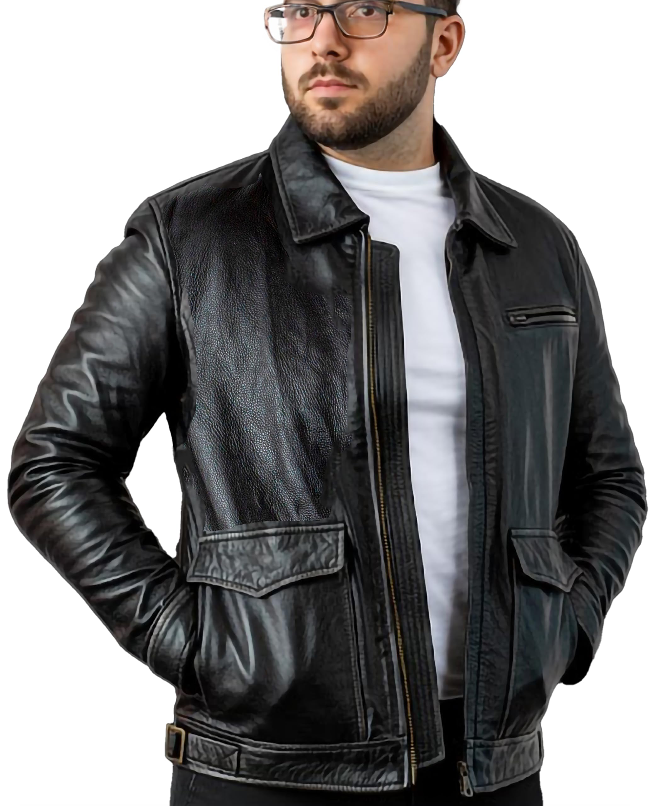 Aviator Styled Mens Leather Jacket With Double Entry Front Pockets| Vintage Black Leather Jacket | Motorbike Real Leather Jacket Mens
