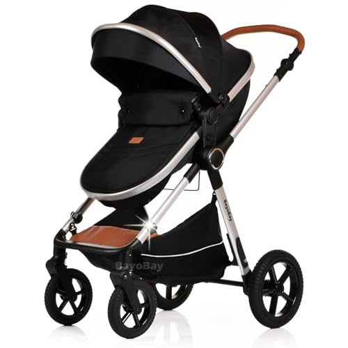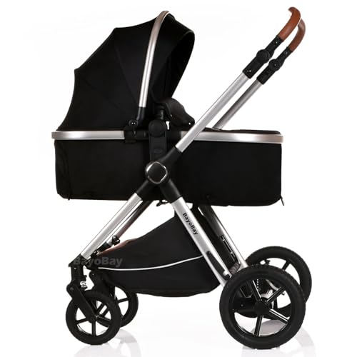 Baby Buggy Pram Pushchair Stroller 3 in 1 with Car Seat Carrycot Child Lightweight Folding Stroller Travel System Pram for Newborns & Toddlers from Birth (BBA – Black Silver, BBA)