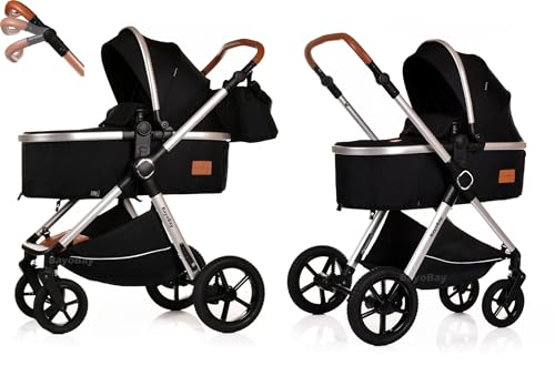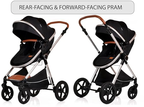- ● ADJUSTABLE PRAM: Lockable swivel wheels. The pram is suitable for a baby aged 0-36 months. The stroller seat can be adjusted to three inclinations: forward-facing with mom or outward-facing. It is essential for newborn babies.
