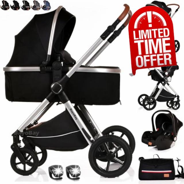Baby Buggy Pram Pushchair Stroller 3 in 1 with Car Seat Carrycot Child Lightweight Folding Stroller Travel System Pram for Newborns & Toddlers from Birth (BBA – Black Silver, BBA)
