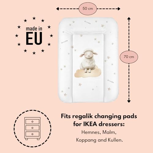 Baby Changing Mat 50×70 cm, White with Sheep – Waterproof & Wipe Clean, Soft for Newborns – Changing Table Mat for Dresser – Padded Baby Care ma
