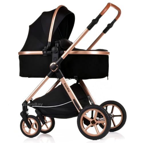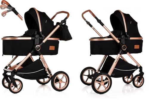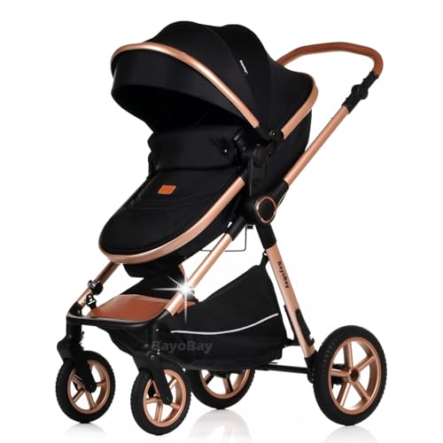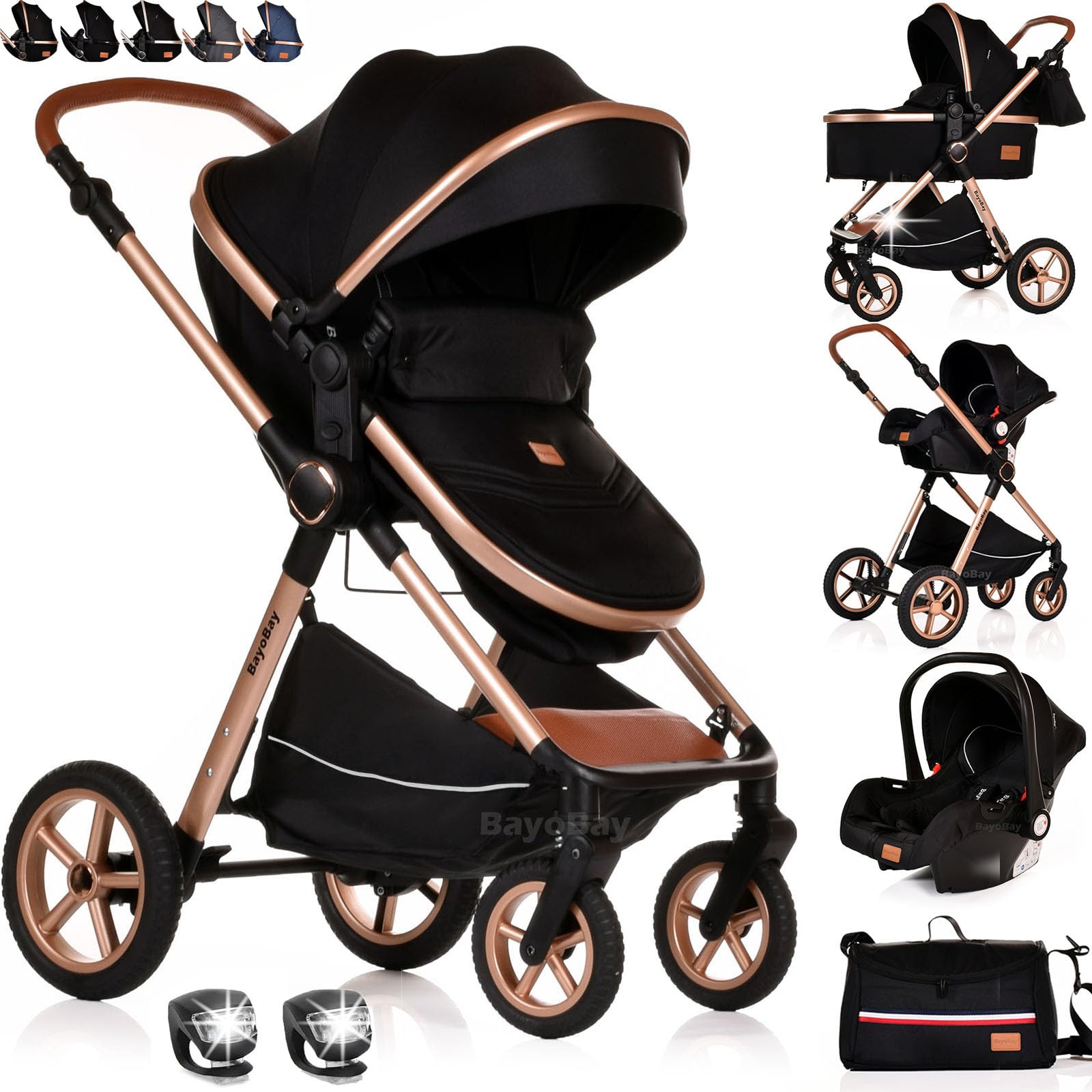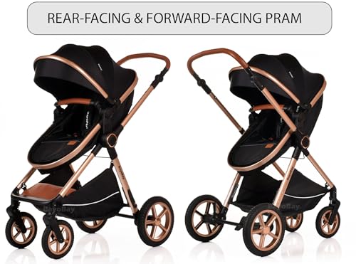 Baby Pram Pushchair Buggy Stroller 3 in 1 with Car Seat Child Lightweight Folding Stroller 3 in 1 Travel System Pram for Newborns Toddlers from Birth New 2026 Style FREEBIES (BBC – Black Gold, BBC)