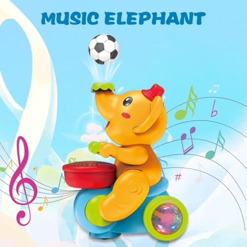 - 【Dazzling Light & Music】The musical baby crawling elephant toys include 1 elephant toy and 2 foam balls. As the toy moves forward, it can simultaneously hit a drum, make elephant sounds, flash lights and blow foam balls from its trunk.