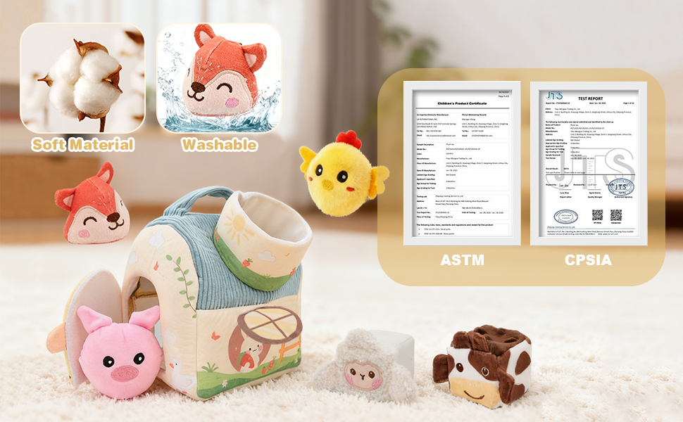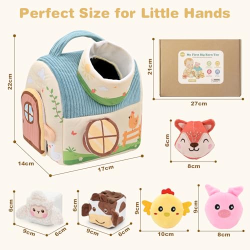 【Safe, Durable & Washable Design】Crafted from BPA-free, non-toxic, baby-safe fabric, all parts are securely stitched and free from small detachable pieces. The certified soft barn toy ensures worry-free playtime. It’s durable yet soft for gentle exploration, and can be hand-washed to stay clean and fresh. Toys for 2 year old girls
