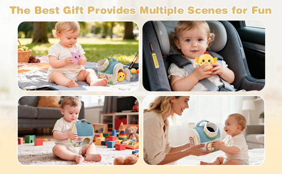 【Portable, Compact & Perfect for Travel】The soft barn doubles as storage and a carry case with a convenient handle, making it the ideal travel toy for car rides, airplane trips, or quiet play at home. Keep your little one entertained anywhere—an easy, mess-free way to play and learn on the go. Sensory toys for 1 year old
