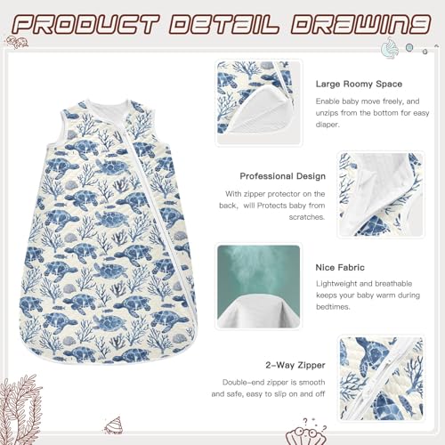 Baby Unisex Newborn Sleep Sack Wearable Blanket Sleeping Bag 0-24 Months L Sea Turtle Coral