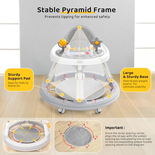 - 【Thoughtful Design】 This baby walker for 6-12 month features a thickened cotton backrest that's soft and breathable, providing optimal support and comfort for long periods of use. The walker comes with toys for easy installation and can be used as a baby cdinner plate when the toy is not in use.