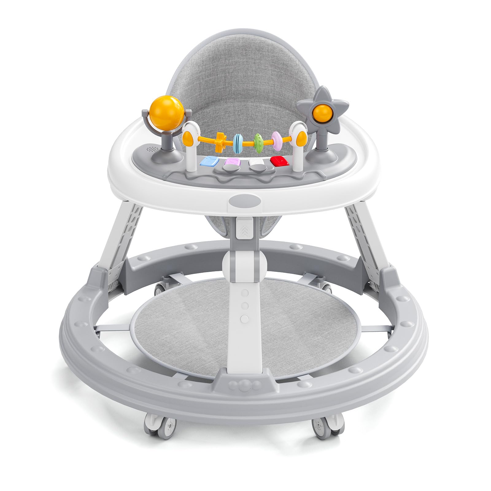 This versatile walker comes with toys for playtime, including music and sounds to keep your baby engaged. The toy can be removed to transform it into a simple dining table. It can be used for learning to walk, strolling, and playing music.