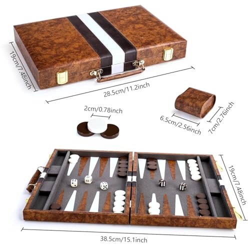【Ideal Dimensions for Gaming】: Our Backgammon Set unfolds to a generous 11" square, providing ample space for strategic gameplay. When not in use, it folds neatly to 15.1" x 7.48", making it the perfect companion for travel and easy storage.