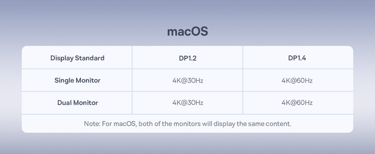 - Note: MacOS systems do not support dual-display mode, only can extend one display with connected monitors under the extension mode