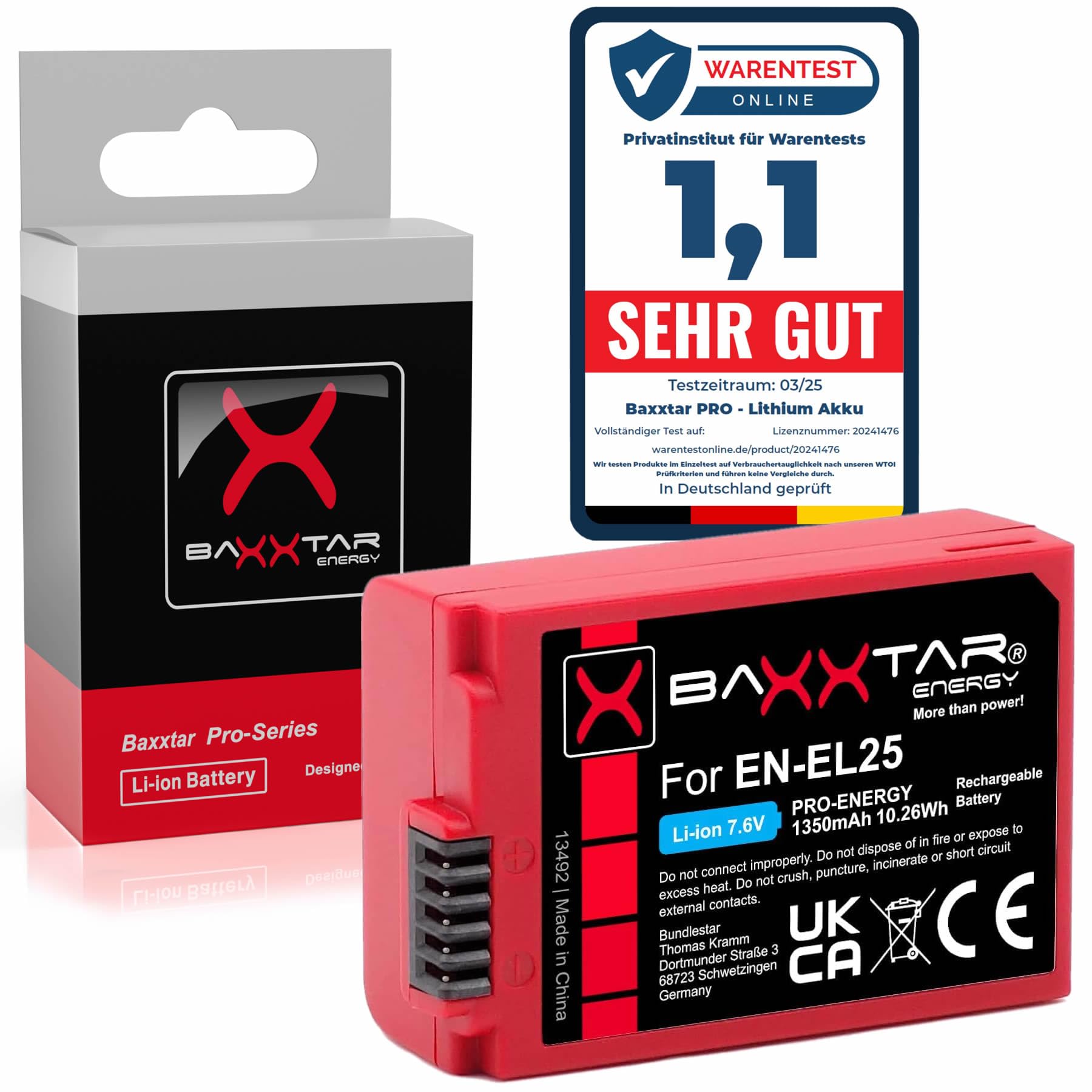 - Baxxtar Pro EN-EL25: Development has been a long way, but we are the first to present a fully compatible battery of this type.