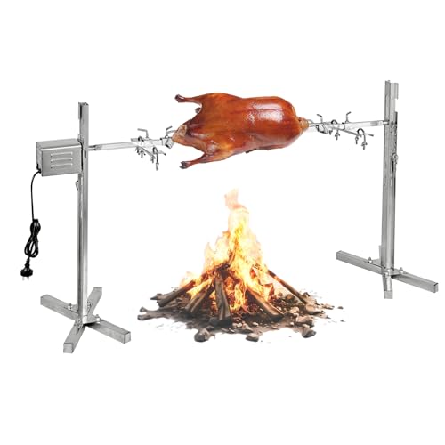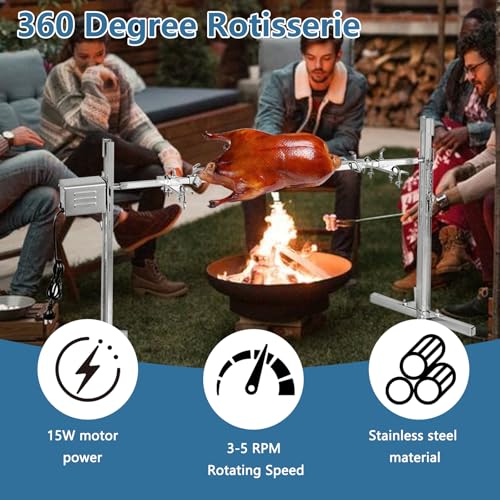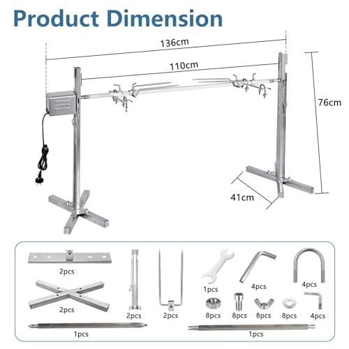 【Stainless Steel Construction】The rotisserie kit is crafted from durable stainless steel, ensuring longevity. Cleaning is straightforward—simply wipe with a damp cloth and detergent after use.