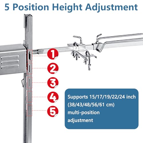 【5-Level Height Adjustment】The automatic rotisserie offers five height settings, adjustable to suit individual requirements: 15/17/19/22/24 inches (38/43/48/56/61 cm).