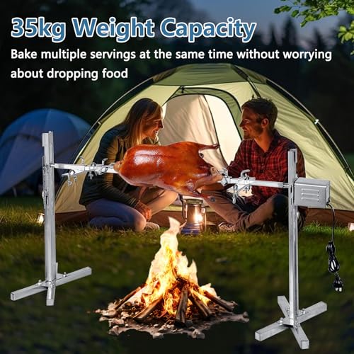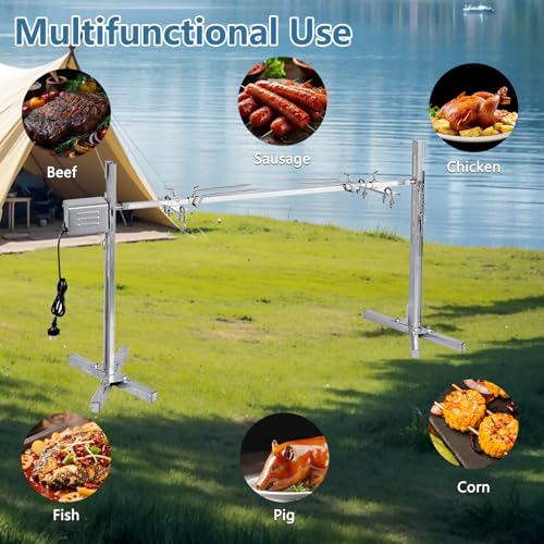 【Versatile Application】The rotisserie spit measures approximately 110 centimetres in total length and is suitable for roasting whole lamb, suckling pig, chicken, steak and more. Whether for family gatherings, outdoor picnics or camping trips, our rotisserie grill makes an excellent choice.