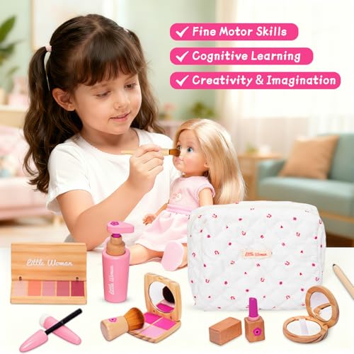 - 【Thoughtful Gift】: Soft colours paired with a delicate wooden texture create a safe and joyful pretend make-up experience for children. This pretend play makeup set for girls combines fun with educational value, making it an ideal gift for girls aged 3–8 for birthdays, Christmas, or Easter.