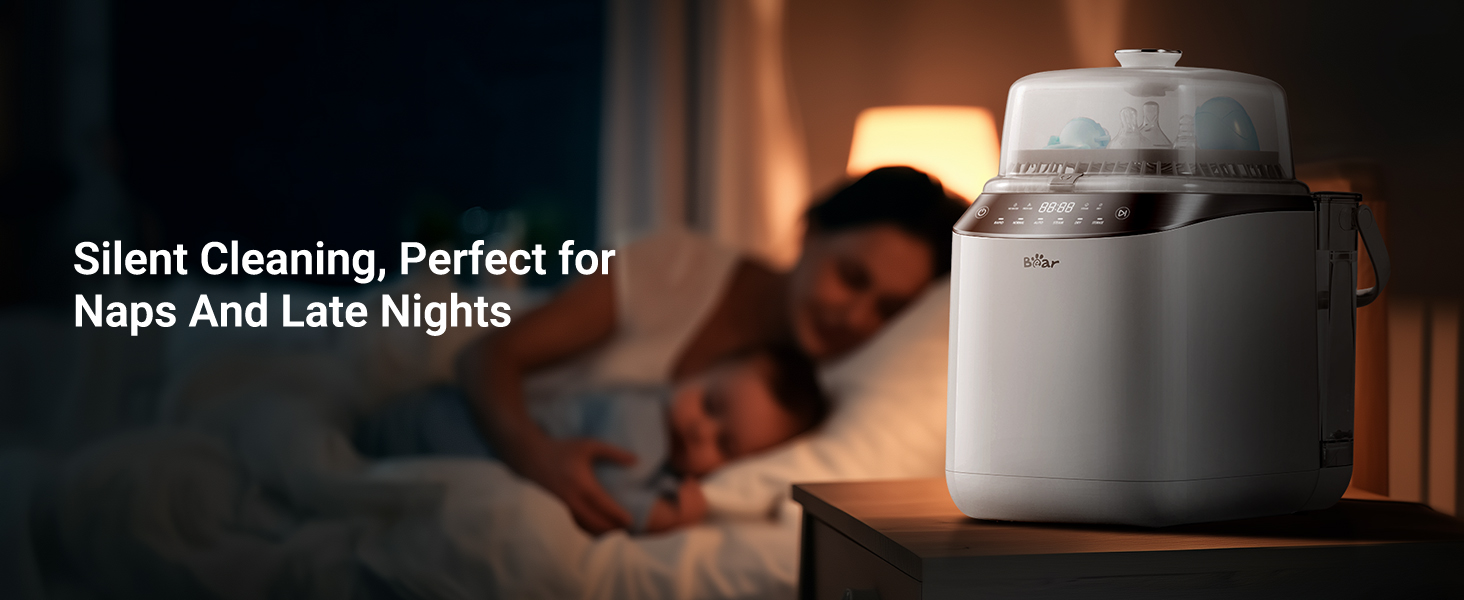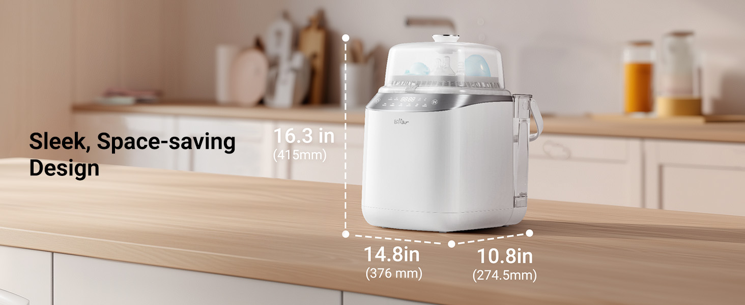 ULTIMATE 4-IN-1 BABY BOTTLE WASHER: The Bear Baby Bottle Washer offers a complete cleaning solution: washing, sterilizing, drying, and hygienic storage—all in one compact unit. Say goodbye to manual scrubbing and hello to more quality time with your baby